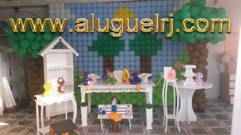 1 Estante GDE, 1 Mesa Provençal (+- 1,50m x 75cm), 2 Expositor inclinado, 1 Expositor de 3 andar, 1 piruliteiro, 1 porta foto, 1 console de duas gavetas (+- 64cm x 27cm), 1 banco de dois lugares, 2 cachepos, 1 Mesa Para bolo (Pode ser com tampo margarida ou a mesa com barrado), 1 mesa magrinha, 1 cristaleira Pequena + AS PELUCIAS DO TEMA